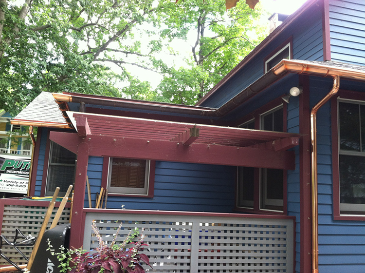 Half-round gutters offer a classic, stylish architectural detail for your home or business. Half-round gutters are available in 5″ or 6″ galvanized, aluminum or copper with a tremendous variety of installation options. Our half-round rain gutter systems provide an extra design element to your home, especially if your home has historical significance. Half-round gutters cost more than traditional K-Style, however there’s no debate that they add character to a gutter system.